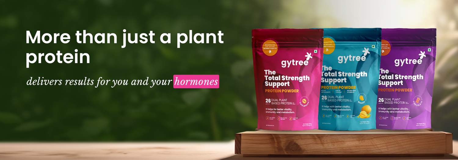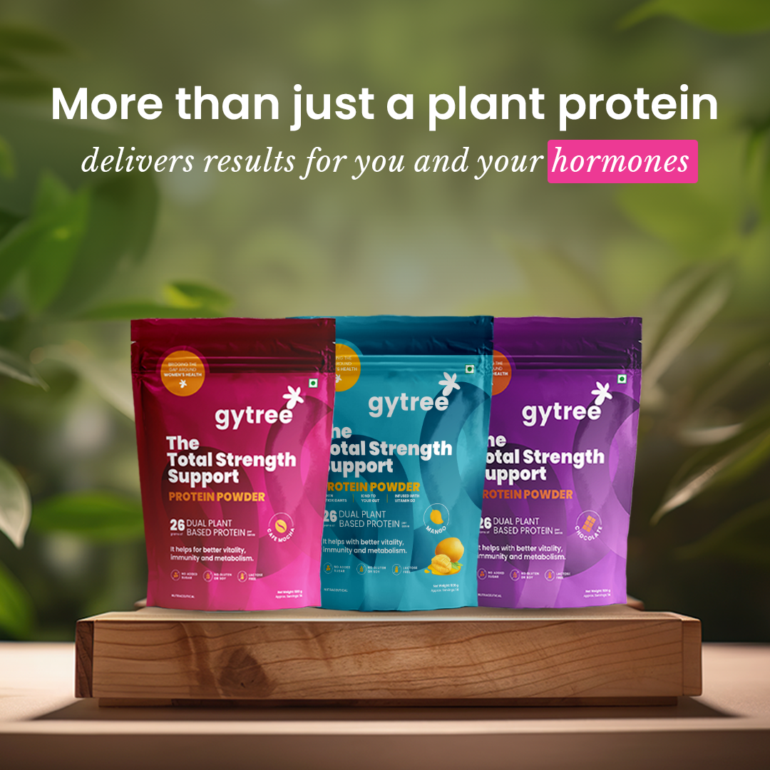 Most protein powders in India are made for men, tested on men, and marketed to men. Women, however, need a protein powder that gives no bloating, helps balance hormones, manages weight, and reduces hair fall while providing skin glow. Gytree's protein is designed specifically for women, containing iron, calcium, and vitamin D3 that address common deficiencies. It is made from plant protein extracts of Canadian golden pea and brown rice, which do not cause bloating and provide all nine essential amino acids to boost energy. Additionally, it is infused with super herbs and adaptogens such as ashwagandha, shatavari, curcumin, etc., to help balance hormones.