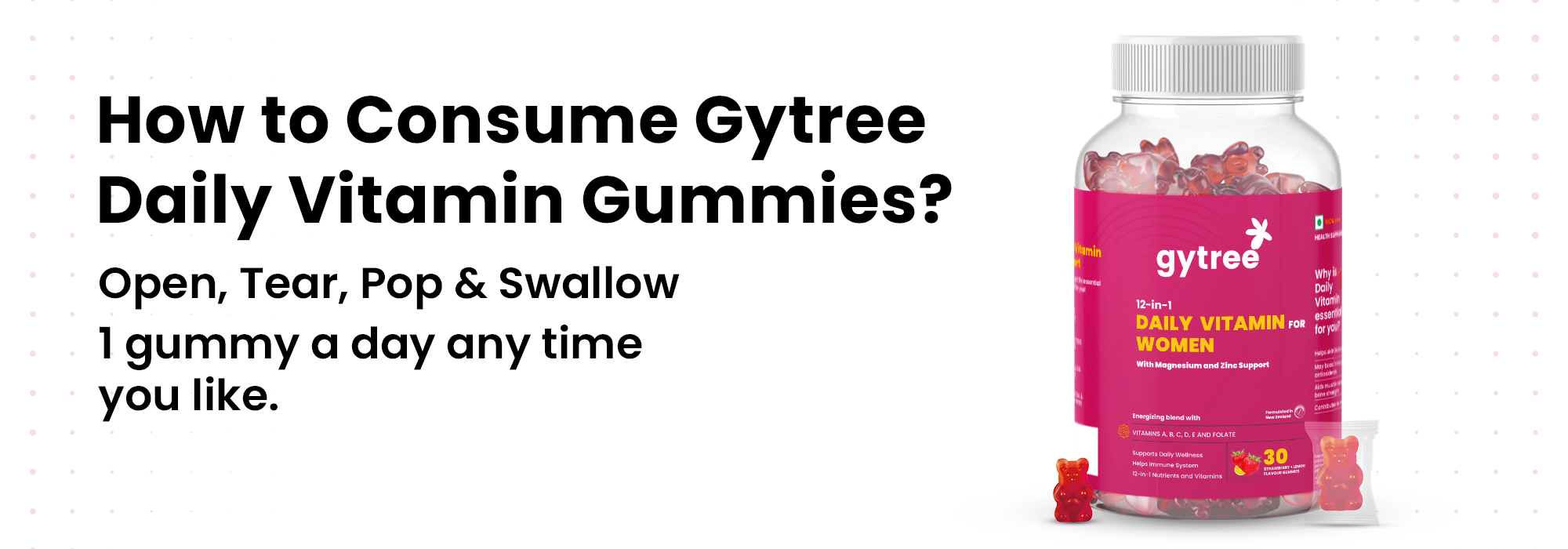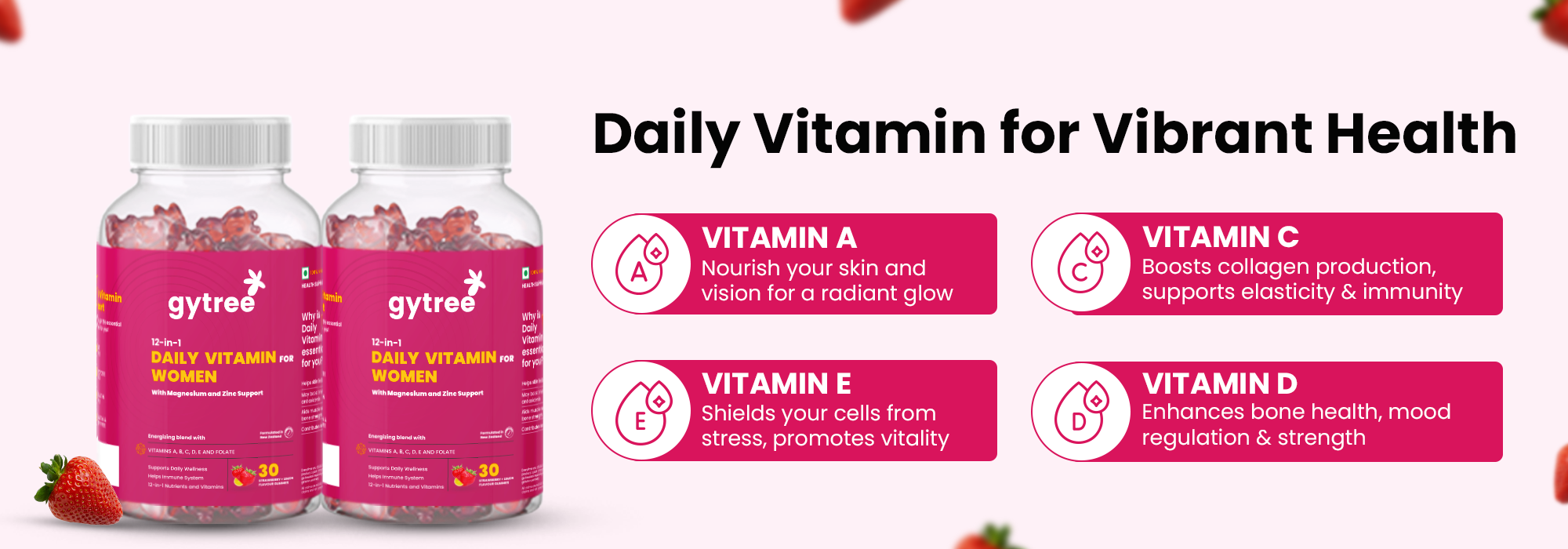 Power of Zinc, Magnesium, other essentials along with Vitamin A,B12, C, D, E, Folic and more. It aids muscle recovery and bone strength. The Gytree Multi Vitamin adds glow, radiance and improved skin texture.