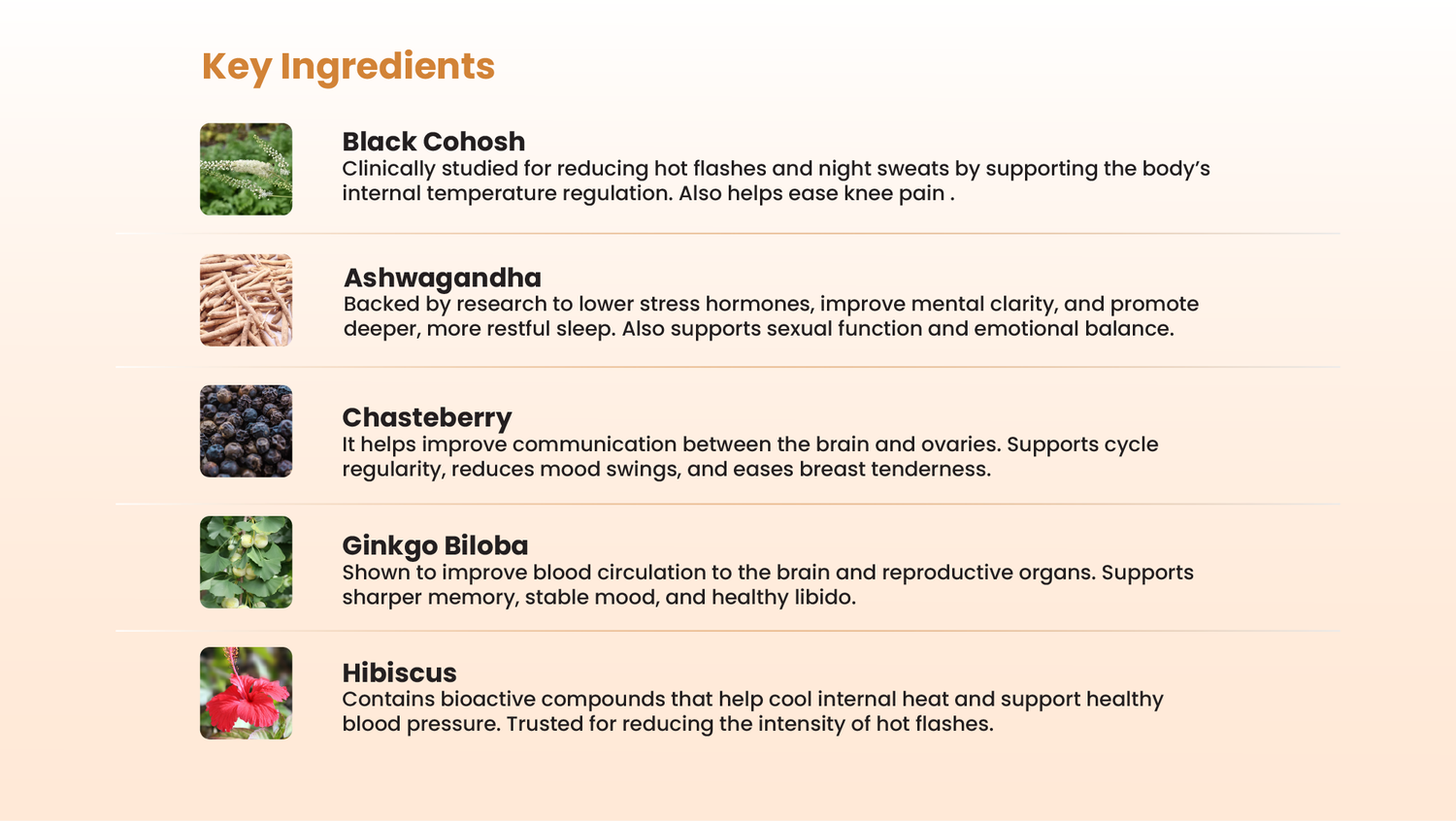 Crafted specifically for women in midlife, this capsule includes five powerful, clean ingredients: