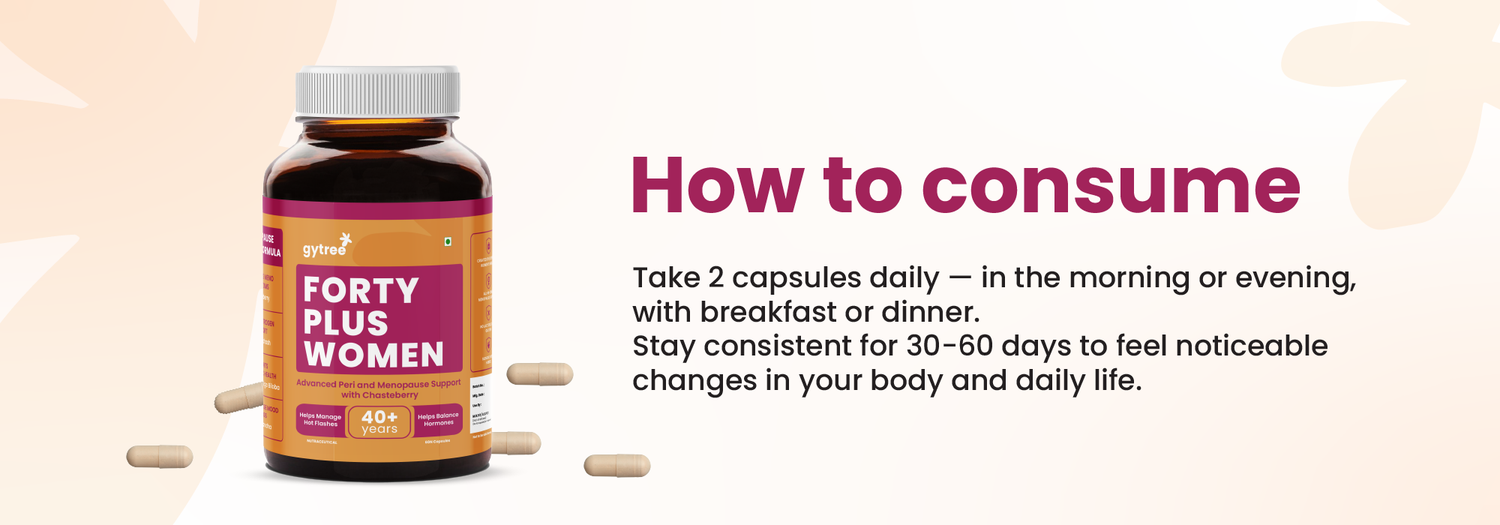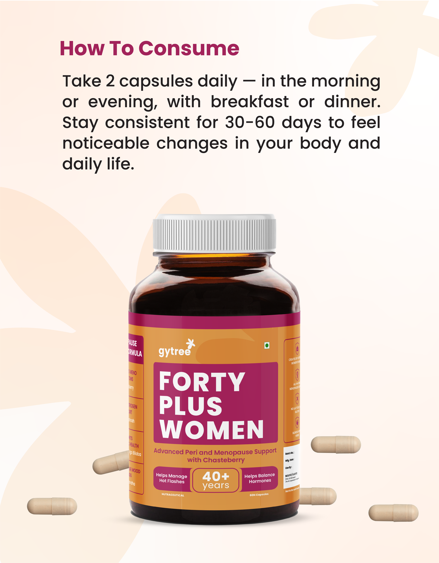 Every woman experiences menopause differently, but fatigue, sleep issues, and hormonal imbalance often top the list of challenges. Gytree's forty plus capsule is made to help with relief on these issues.