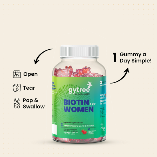 Open, tear, pop and swallow 1 Biotin gummy a day. Simple!