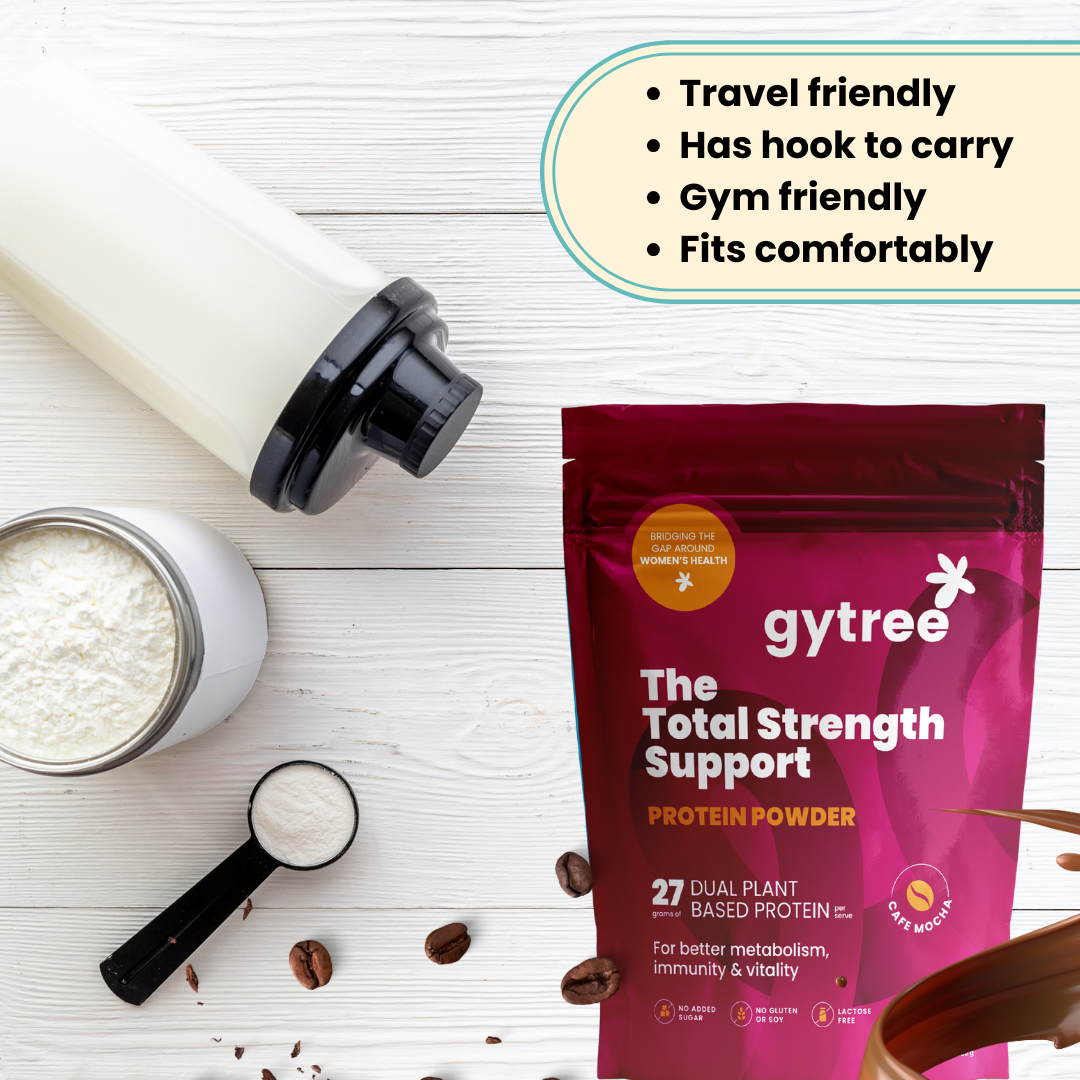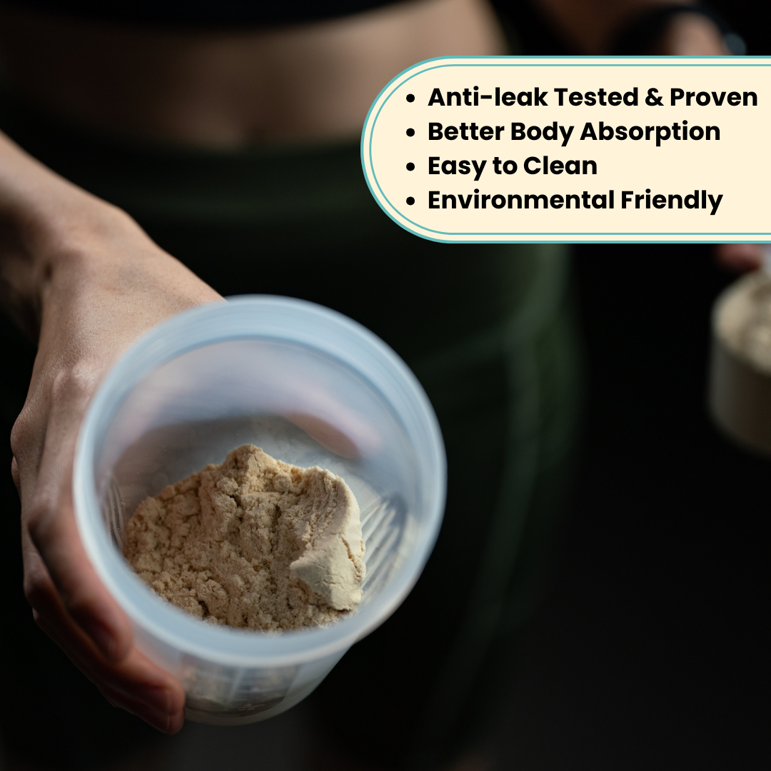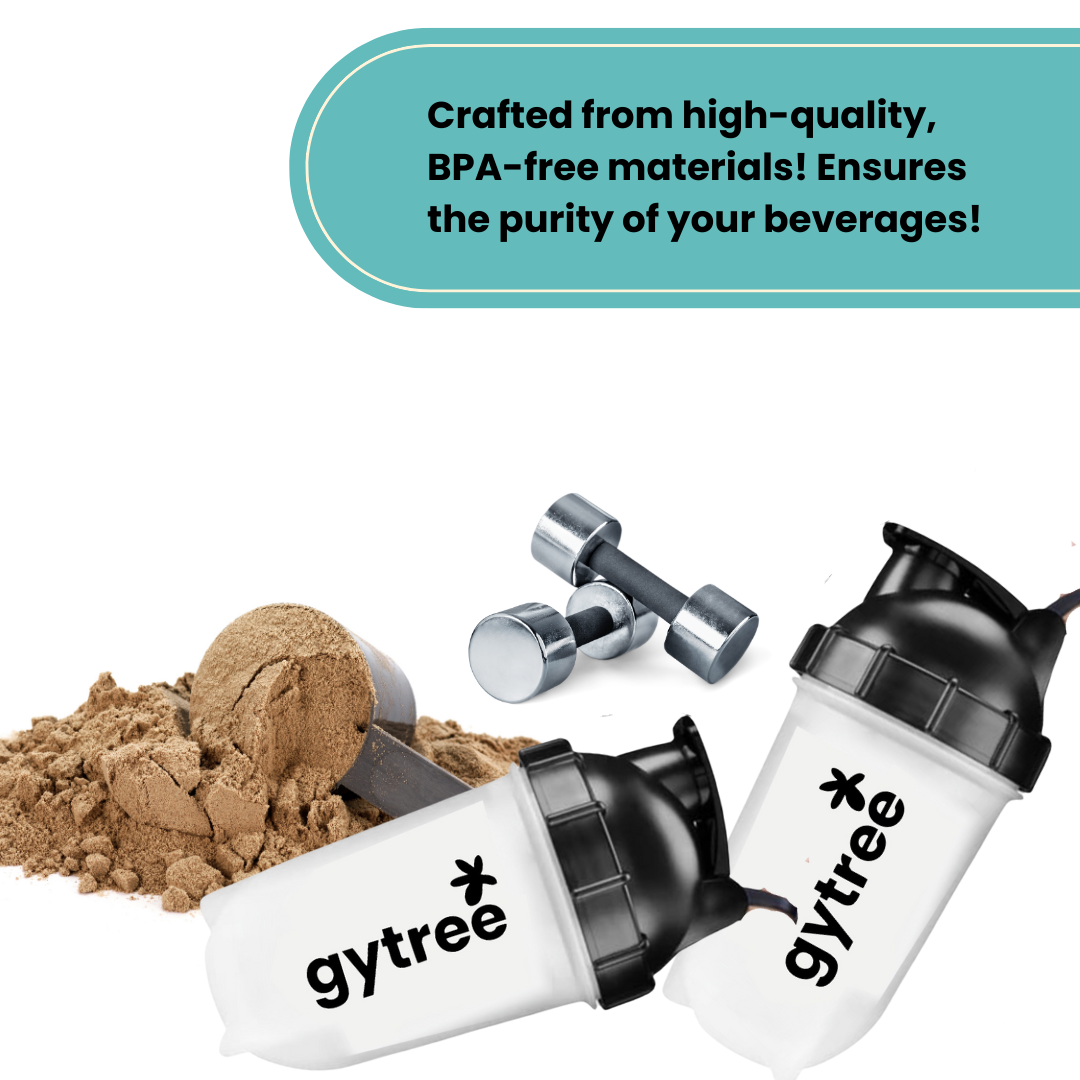 Gytree Compact Shaker – your leak-proof workout essential. Tested for anti-leak assurance, it boasts an ultra-tight lid and lockable flip top. The 500ml shaker includes a blender blade-like mixer for swift, consistent blends, ensuring optimal supplement absorption. Crafted from BPA-free materials, it's eco-friendly & easy to clean.