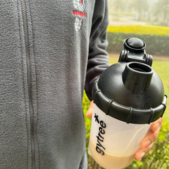 Start with a scoop Add 1 full scoop of Gytree Protein to your glass or shaker bottle. Add liquid Pour in water or milk of your choice (around 200 ml or more). Add ice if you like it chilled. Shake it up! Close the lid tight and shake well for 30 seconds until smooth. No lumps, no fuss. Customize it Prefer it thinner? Just add a bit more liquid and shake again. You’re in charge of the texture!