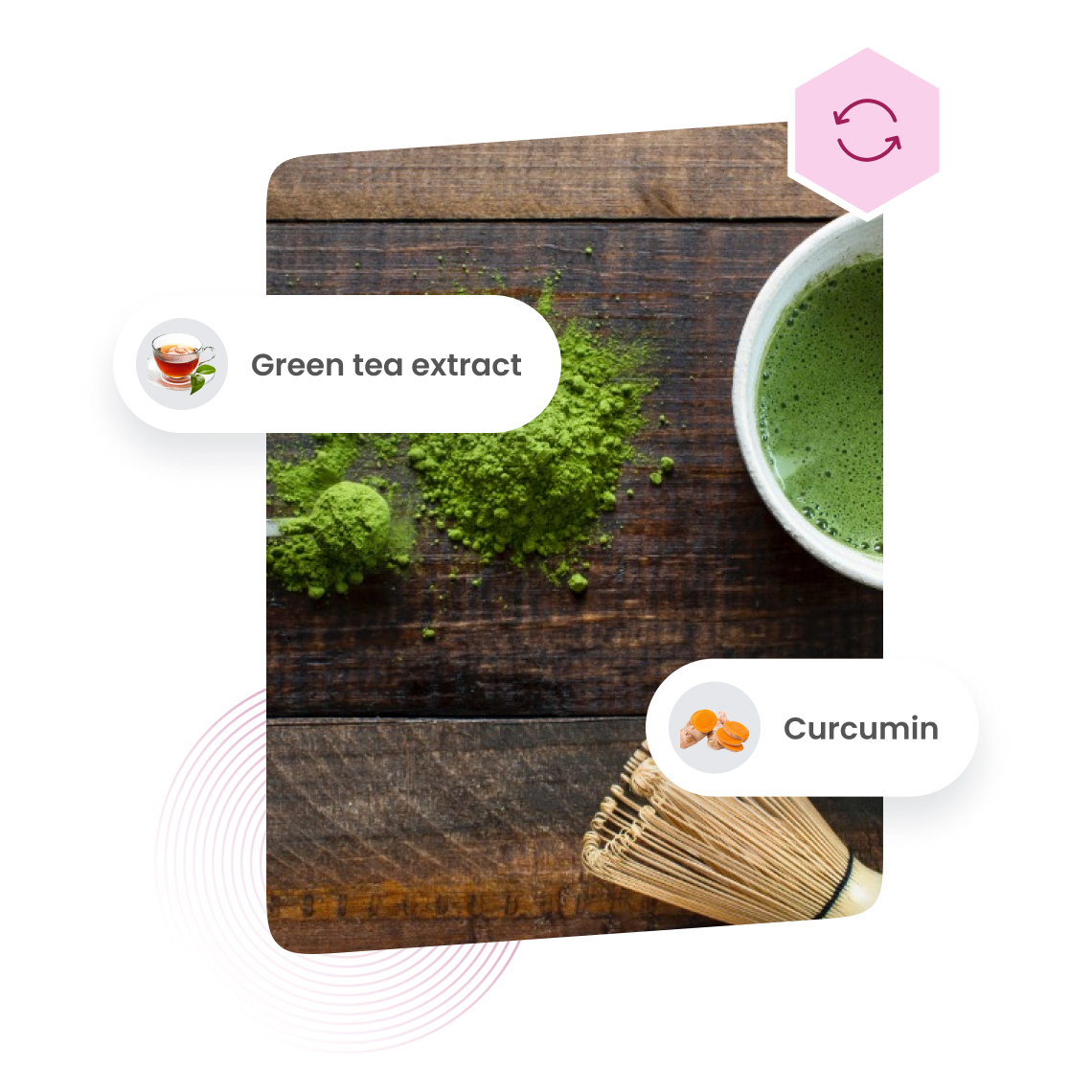 Green tea extract + Curcumin are two natural ingredients that have been found to help increase the rate of metabolic processes, resulting in the body burning more calories and fat.