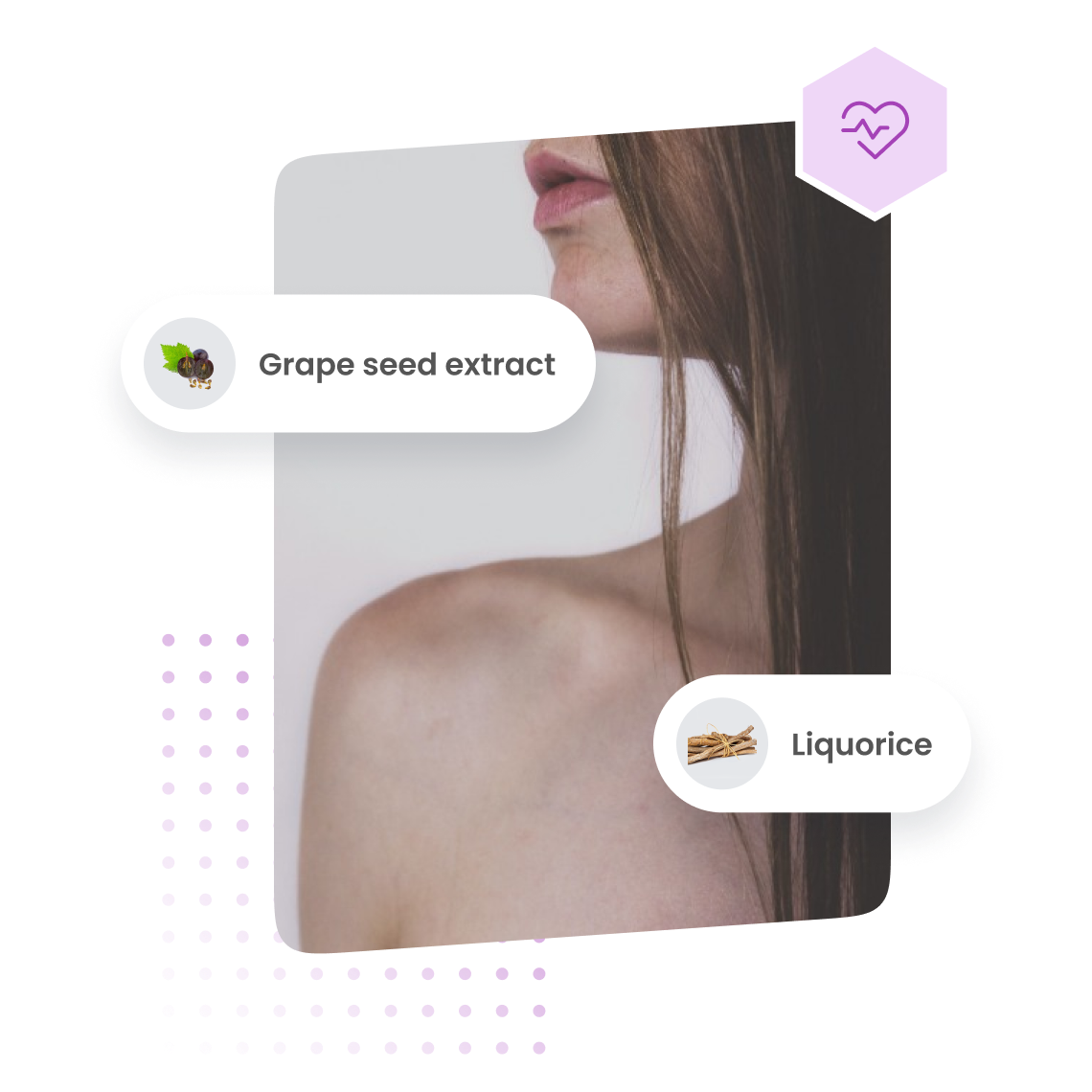 Grape seed extract + Liquorice help protect your skin from damage caused by environmental pollution and oxidative stress from the sun.